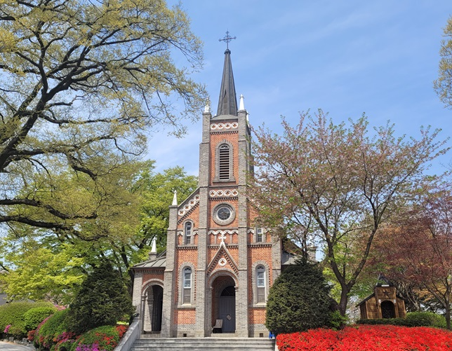 연두빛 나뭇잎이 참 좋았습니다. 가을 단풍도 아름다운 성당이지요.