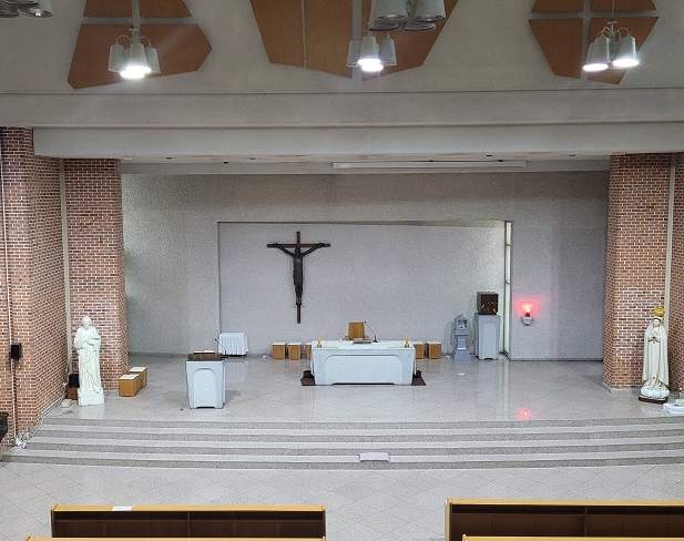 자세히 보시면 제대 쪽도 채광창을 통하여 빛이 자연스럽게 들어와서 성전에 빛을 머금게 하려 노력한 흔적이 보입니다.