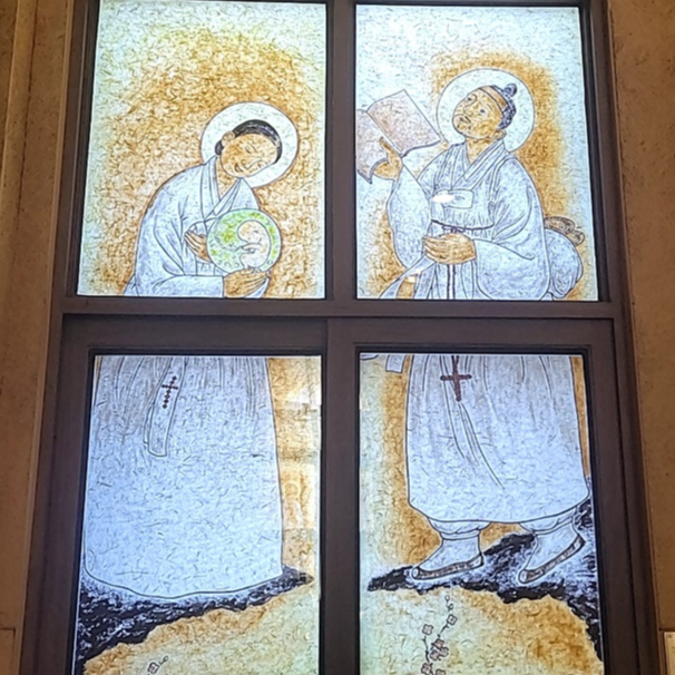 서울 삼각지성당 안 스테인드글라스 그림이고, 심순화 카타리나 님 작품입니다.