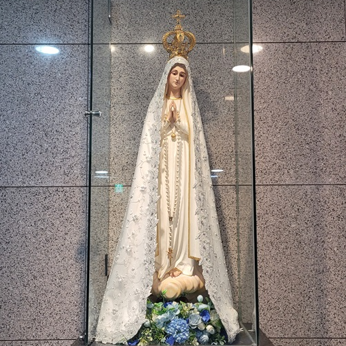 바로 위 사진은 문이 닫힌 전시관 바로 앞에 있던 "파티마의 복되신 동정 마리아" 성모상입니다.