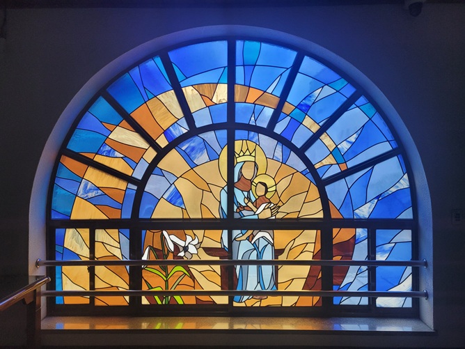 위 사진은 서울 흑석동성당 안에 있는 스테인드글라스 사진입니다.